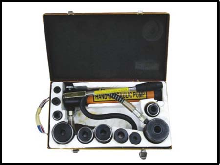 用途及性能:液壓開孔器,是一種能在4mm以下的金屬板 上開孔的先進手動液壓工具,能夠起到一般沖壓設備所不能 達到的開孔作用。其操作簡便、省力、速度快、加工面平整 光潔,也不受場地,位置限制均可使用,安全可靠。液壓開 孔器結(jié)構(gòu)輕巧、美觀、易攜帶、可供冶金、石油、化工、電 子、電器、船舶、機械等行業(yè)安裝維修電線管道、指示燈、 儀表開關等的開孔,更適用于已成型的儀表面板底板,開關箱分線電器盒的壁面開孔之用。