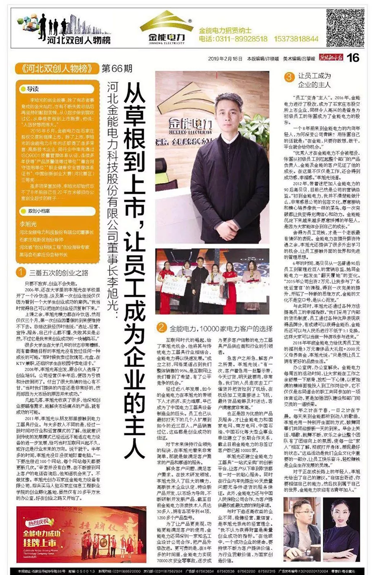 燕趙都市報(bào)作為河北省最權(quán)威的主流媒體給與金能電力創(chuàng)始人和金能電力的報(bào)道: