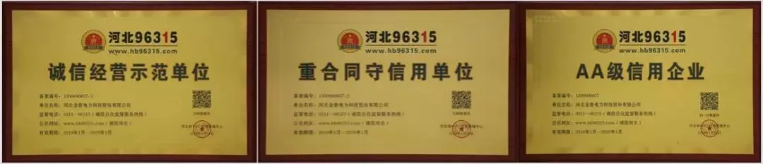 金能電力榮獲河北96315“誠(chéng)信經(jīng)營(yíng)示范單位”、“重合同守信用單位”、“AA級(jí)信用企業(yè)