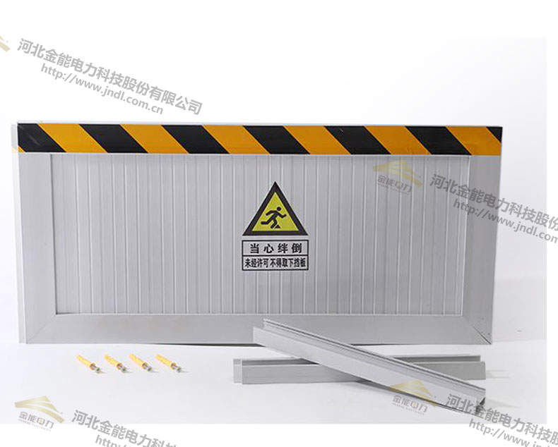 食堂專(zhuān)用防鼠板由鋁合金主面板、提示標(biāo)、反光條、卡槽、螺絲等組成,如下圖1-1所示